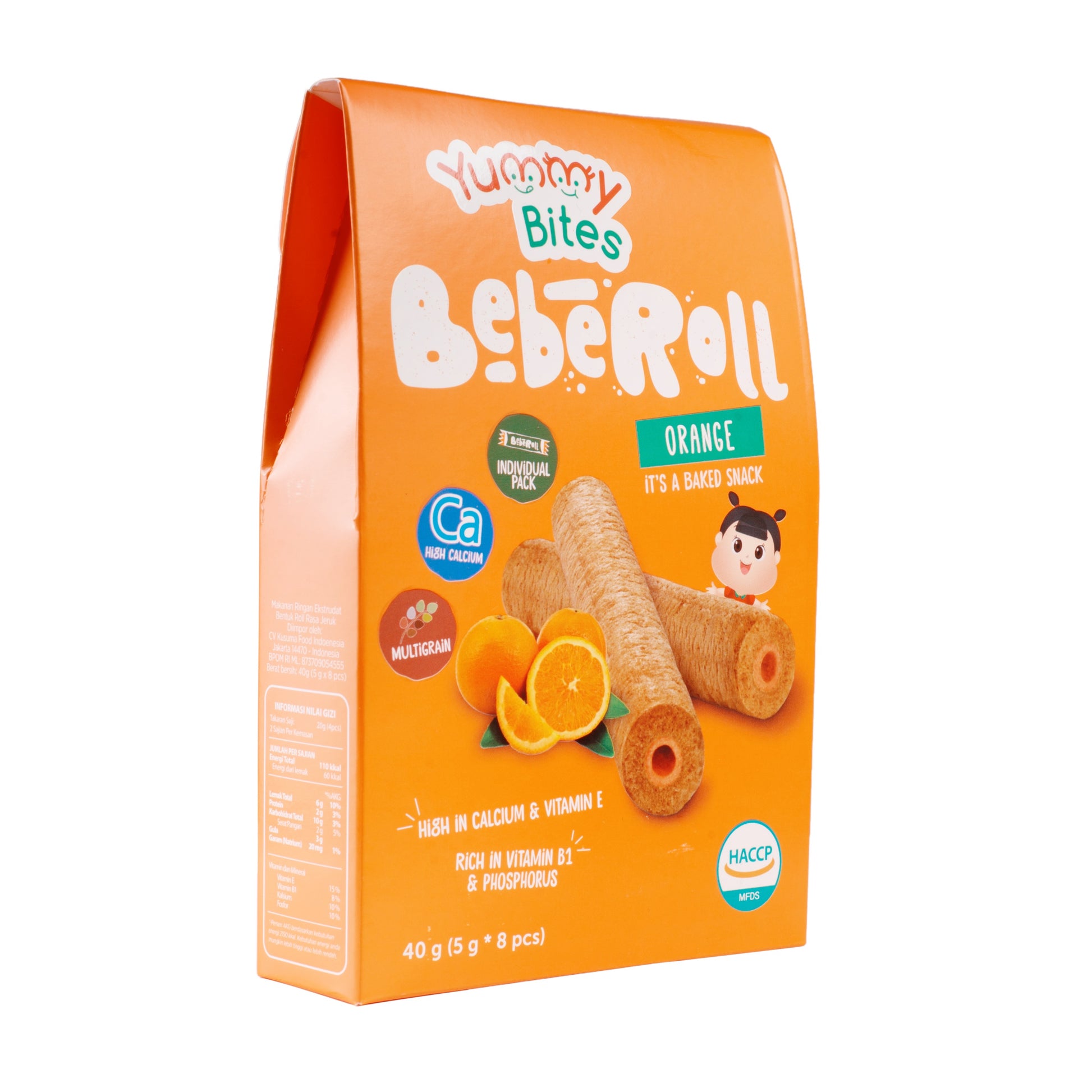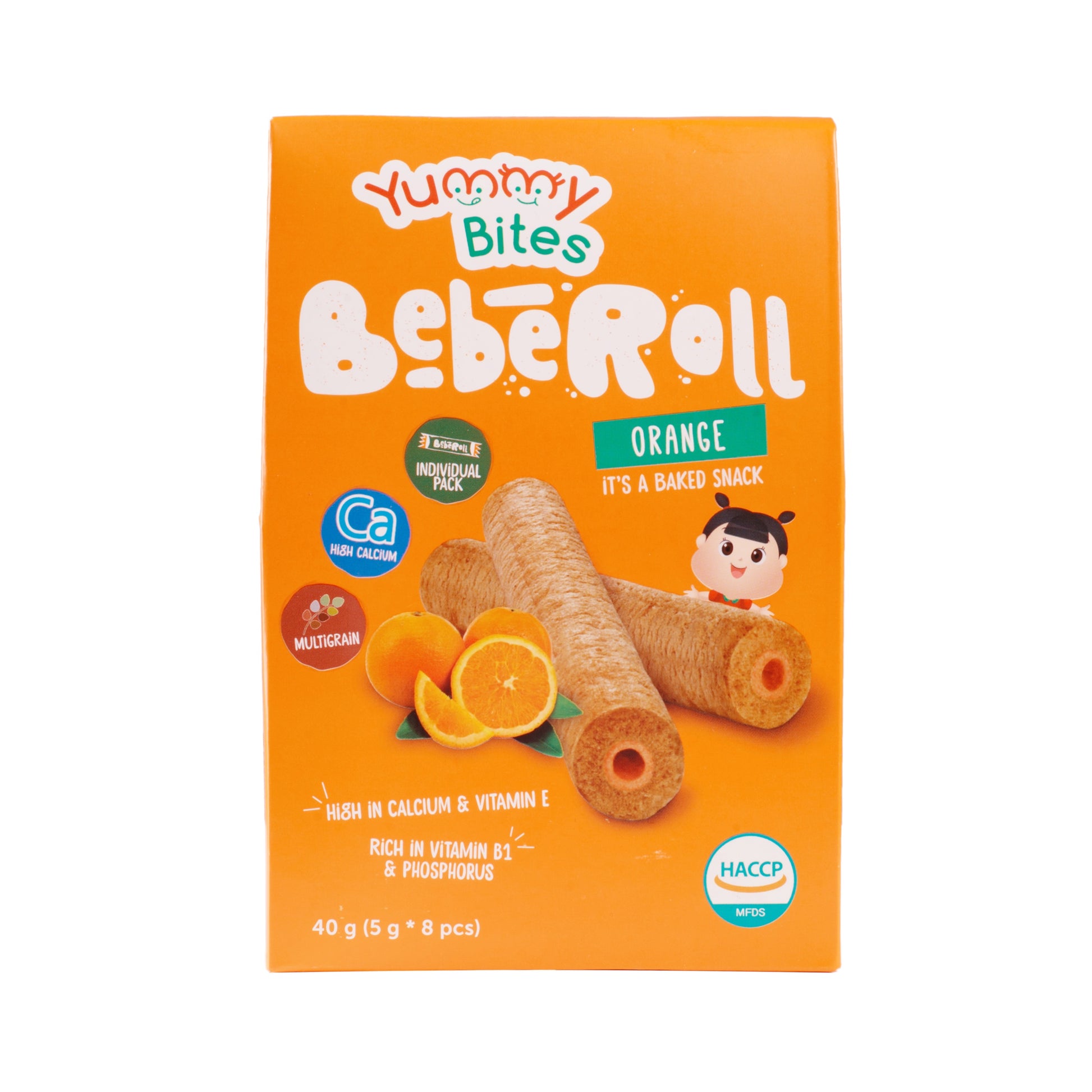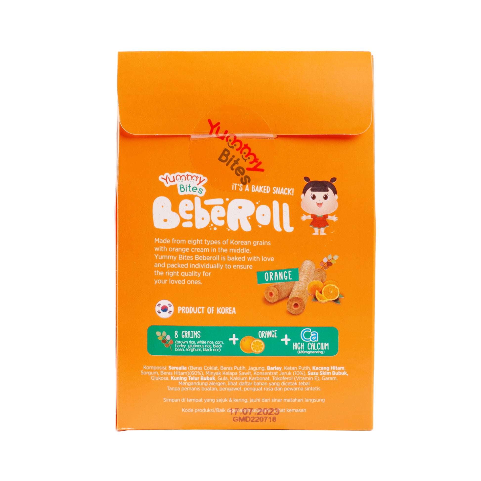 Made from eight types of Korean grains with orange cream in the middle, Yummy Bites Beberoll is baked with love and packed individually to ensure the right quality for your loved ones.